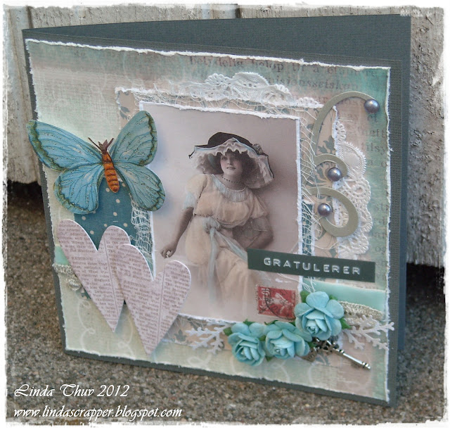 Synes det er givende å delta på konkurranser da jeg ofte blir utfordret til å gjøre ting jeg vanligvis ikke gjør. Oppgave 3 på ScrapBattle var å bruke sjablonger og tråd, twine, hyssing eller søm. Sjablonger har jeg ikke brukt før. Her har jeg laget sjablonger selv ved hjelp av punch og hullemaskin. Igjen har jeg latt meg friste av glimmer mist. Har splættet og brukt korken til å lage ringer. Sømmen er sydd med håndsymaskin.